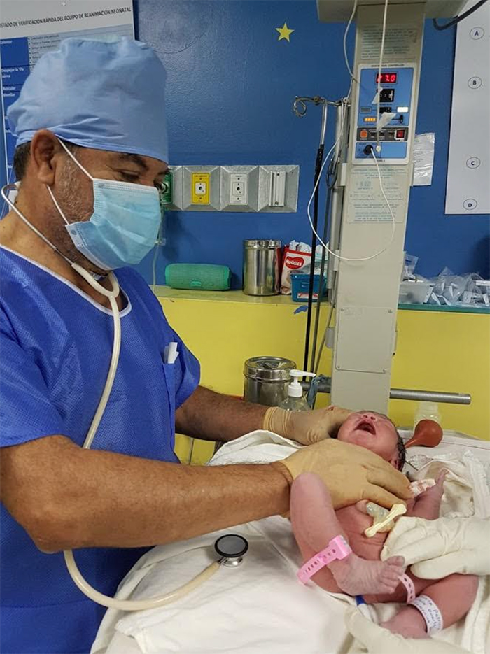 Al momento del nacimiento, es necesaria la presencia de un Neonatologo en sala de partos o en el quirófano en caso de CESAREA para recibir la atención inmediata en el periodo de transición del ambiente intrauterino al extrauterino, dar las primeras medidas de atención y cuidado, evaluar y certificar que se encuentra estable en los primeros minutos de la vida, así como calificar su APGAR.